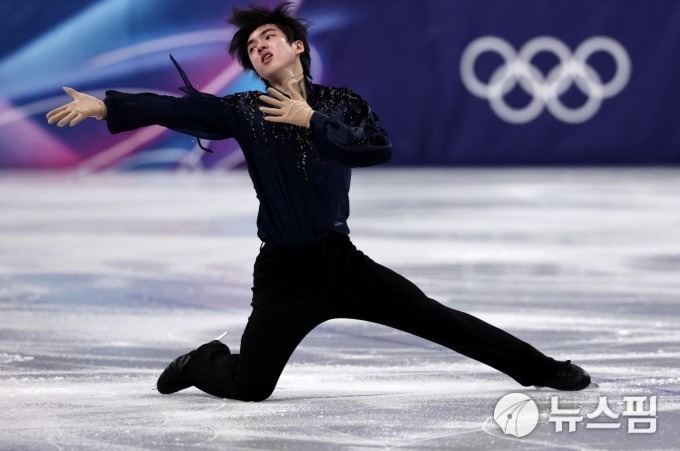 [밀라노 로이터=뉴스핌] 박상욱 기자= 한국 피겨 남자 싱글 간판 차준환(서울시청)이 8일(한국시간) 이탈리아 밀라노 아이스스케이팅 아레나에서 열린 2026 밀라노·코르티나 동계올림픽 피겨스케이팅 단체전 남자 싱글 쇼트프로그램에서 연기를 펼치고 있다. 2026.02.08 psoq1337@newspim.com