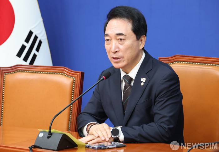 [서울=뉴스핌] 정일구 기자 = 박수현 더불어민주당 수석대변인이 8일 오전 서울 여의도 국회에서 열린 현안 관련 기자간담회에서 발언하고 있다. 2026.02.08 mironj19@newspim.com