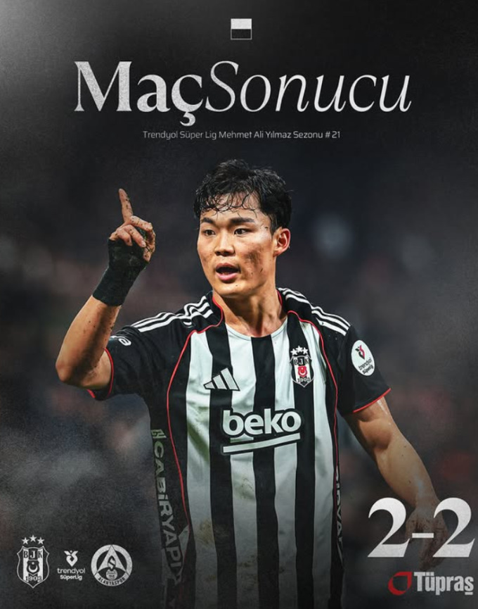 베식타시는 9일(한국시간) 튀르키예 이스탄불 베식타스 파크에서 열린 알란야스포르와의 2025-2026 튀르키예 수페르리가 21라운드 홈 경기에서 난타전 끝에 2-2 무승부를 기록했다.