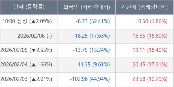 [표] 주요 기관별 순매매량 (단위 만주)