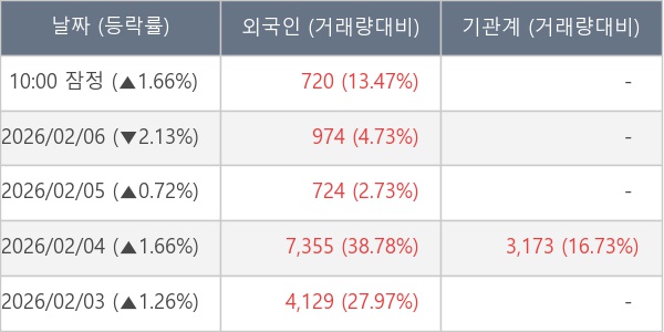 [서울=뉴스핌] 로보뉴스 = 09일 10시 15분 현재 에이텍모빌리티(224110)는 전일 대비 1.66% (현재가 9,790원) 상승했고, 외국인이 최근 5일 연속 순매수(누적 13,902주, 잠정) 행진을 하고 있다.