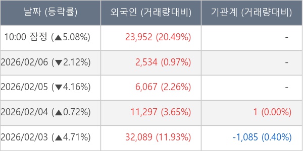[표] 외국인ㆍ기관 순매매량 (단위 주)
