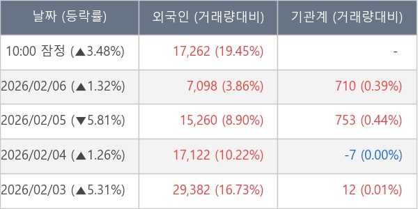 [표] 외국인ㆍ기관 순매매량 (단위 주)