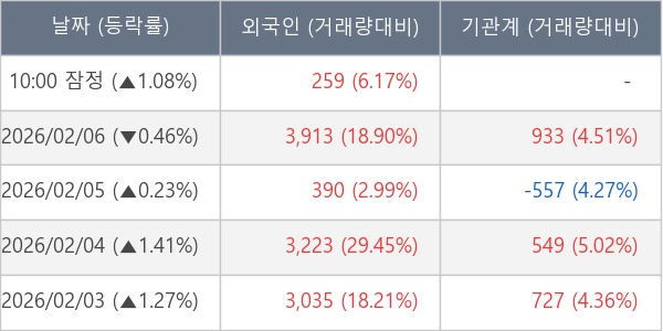 [표] 외국인ㆍ기관 순매매량 (단위 주)