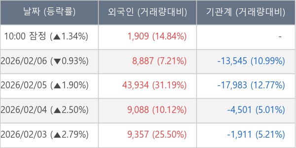 [표] 외국인ㆍ기관 순매매량 (단위 주)