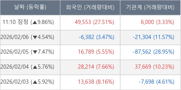 ※ 사모펀드 등 일부 기관의 순매매량은 표시되지 않음