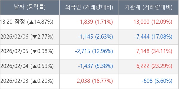 ※ 사모펀드 등 일부 기관의 순매매량은 표시되지 않음