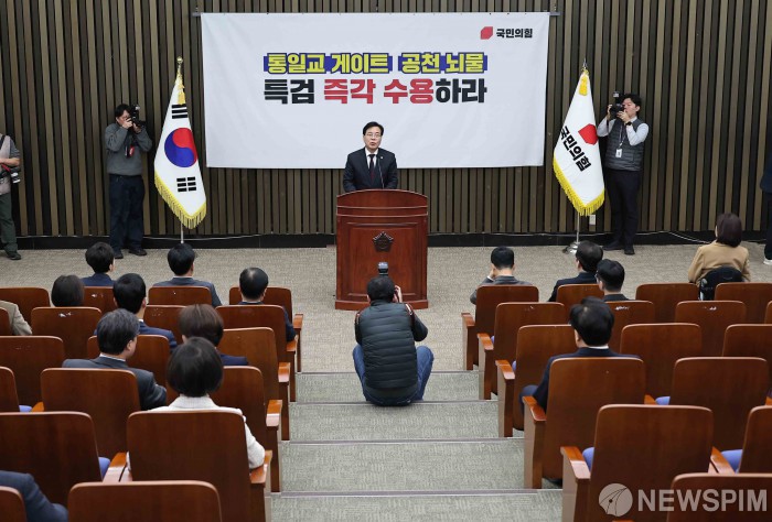 [서울=뉴스핌] 윤창빈 기자 = 송언석 국민의힘 원내대표가 9일 오후 서울 여의도 국회에서 열린 의원총회에서 모두발언을 하고 있다. 2026.02.09 pangbin@newspim.com