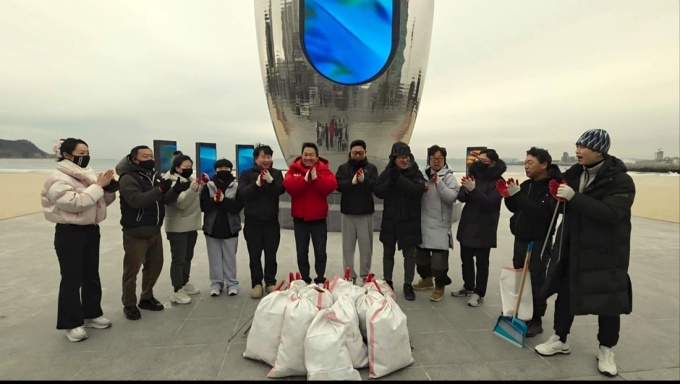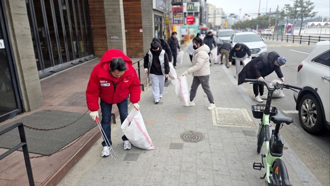 이들은 영하권의 혹한 속에서 영일대 해변과 인도 곳곳에 버려진 쓰레기를 수거했다.