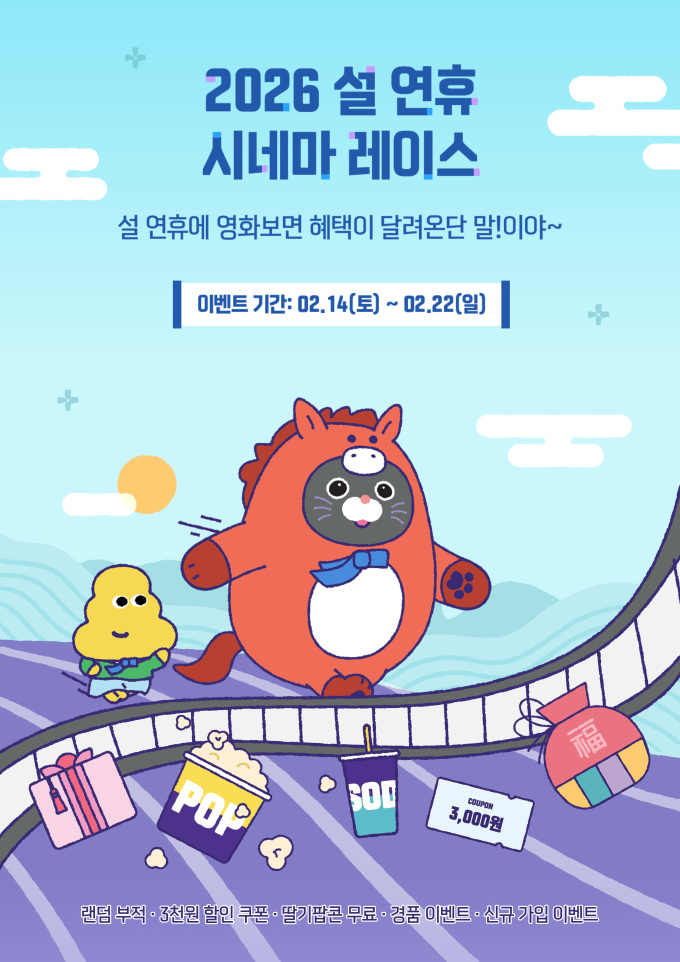 [서울=뉴스핌] 양진영 기자 = 메가박스(대표 홍정인, 남용석)가 2026년 붉은 말의 해 설날을 맞아 각종 할인과 랜덤 굿즈 등 다양한 혜택을 담은 '2026 설 연휴 시네마 레이스'를 진행한다.