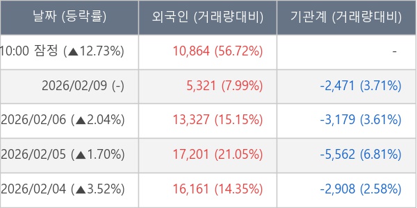 [표] 외국인ㆍ기관 순매매량 (단위 주)