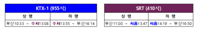 교차운행은 KTX 수서역↔부산역, SRT 서울역↔부산역으로 차량을 바꿔 각 1회 왕복 운행하는 방식이다.