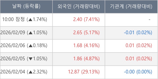 [표] 외국인ㆍ기관 순매매량 (단위 만주)