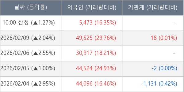 [표] 외국인ㆍ기관 순매매량 (단위 주)