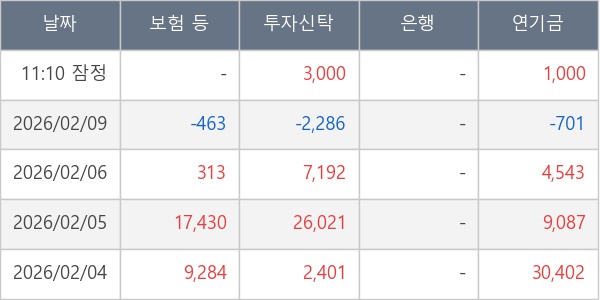 ※ 사모펀드 등 일부 기관의 순매매량은 표시되지 않음