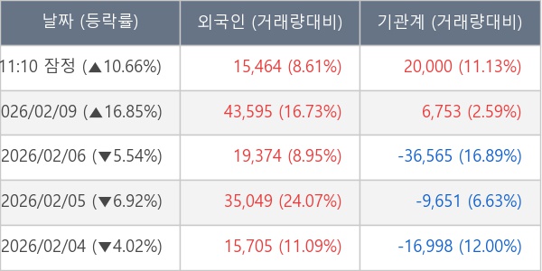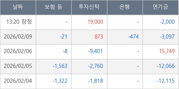 [표] 주요 기관별 순매매량 (단위 주)