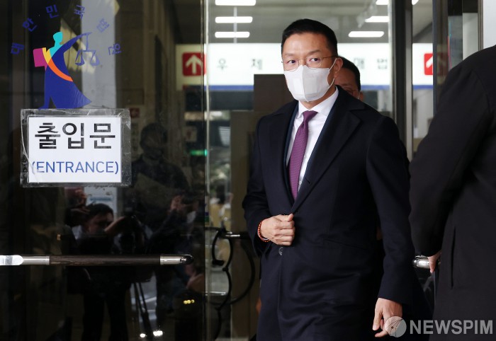 [서울=뉴스핌] 정일구 기자 = 미공개 정보를 이용해 주식을 사들여 억대 부당 이득을 챙긴 혐의를 받는 고(故) 구본무 LG그룹 선대회장의 장녀인 구연경 LG복지재단 대표의 남편 윤관 블루런벤처스(BRV) 대표가 10일 오후 서울 양천구 서울남부지방법원에서 열린 1심 선고 공판을 마친 뒤 법원을 나서고 있다. 서울남부지법 형사합의13부는 이날 자본시장과 금융투자업에 관한 법률 위반 혐의로 불구속 기소된 구 대표와 윤 대표에게 무죄를 선고했다. 2026.02.10 mironj19@newspim.com