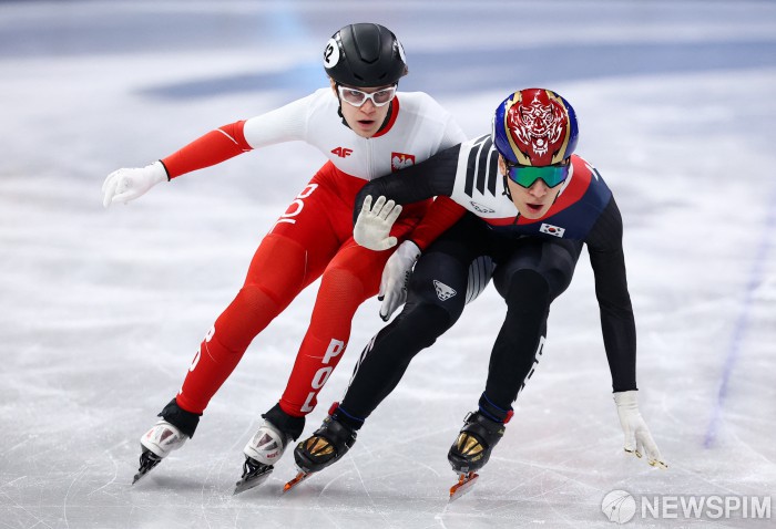 [밀라노=로이터뉴스핌] 밀라노 코르티나 2026 올림픽에 출전한 쇼트트랙 선수 황대헌이 지난 10일 이탈리아 밀라노 아이스 스케이팅 아레나에서 1000m 예선 경기를 펼치고 있다. 2026.02.11 photo@newspim.com