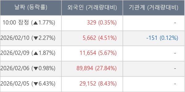 [표] 외국인ㆍ기관 순매매량 (단위 주)