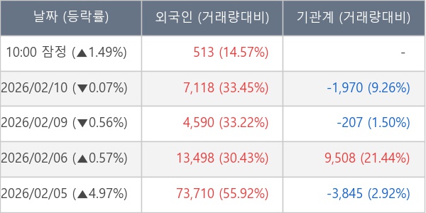 [서울=뉴스핌] 로보뉴스 = 11일 10시 15분 현재 사람인(143240)은 전일 대비 1.49% (현재가 14,350원) 상승했고, 외국인이 최근 10일 연속 순매수(누적 11.49만 주, 잠정) 행진을 하고 있다.