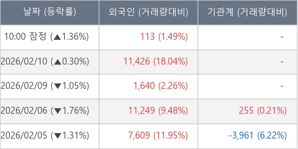 [표] 외국인ㆍ기관 순매매량 (단위 주)