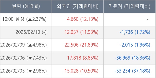 [표] 외국인ㆍ기관 순매매량 (단위 주)