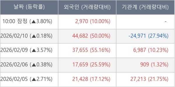 [표] 외국인ㆍ기관 순매매량 (단위 주)