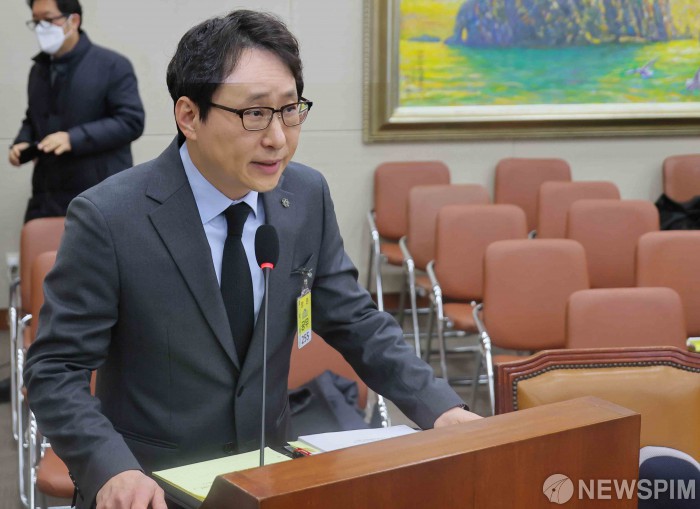 [서울=뉴스핌] 윤창빈 기자 = 이재원 빗썸 대표가 11일 오전 서울 여의도 국회 정무위원회에서 열린 빗썸 비트코인 오지급 사고와 관련한 긴급 현안질의에서 의원 질문에 답변하고 있다. 2026.02.11 pangbin@newspim.com