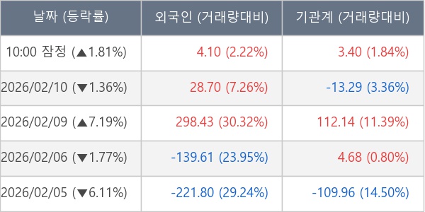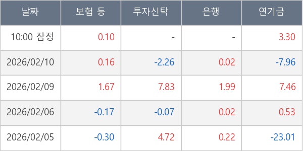 [표] 주요 기관별 순매매량 (단위 만주)