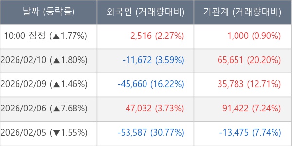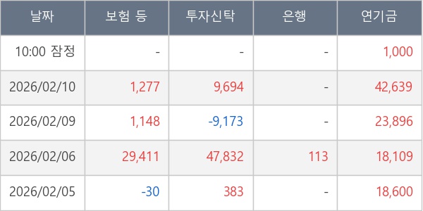 [표] 주요 기관별 순매매량 (단위 주)