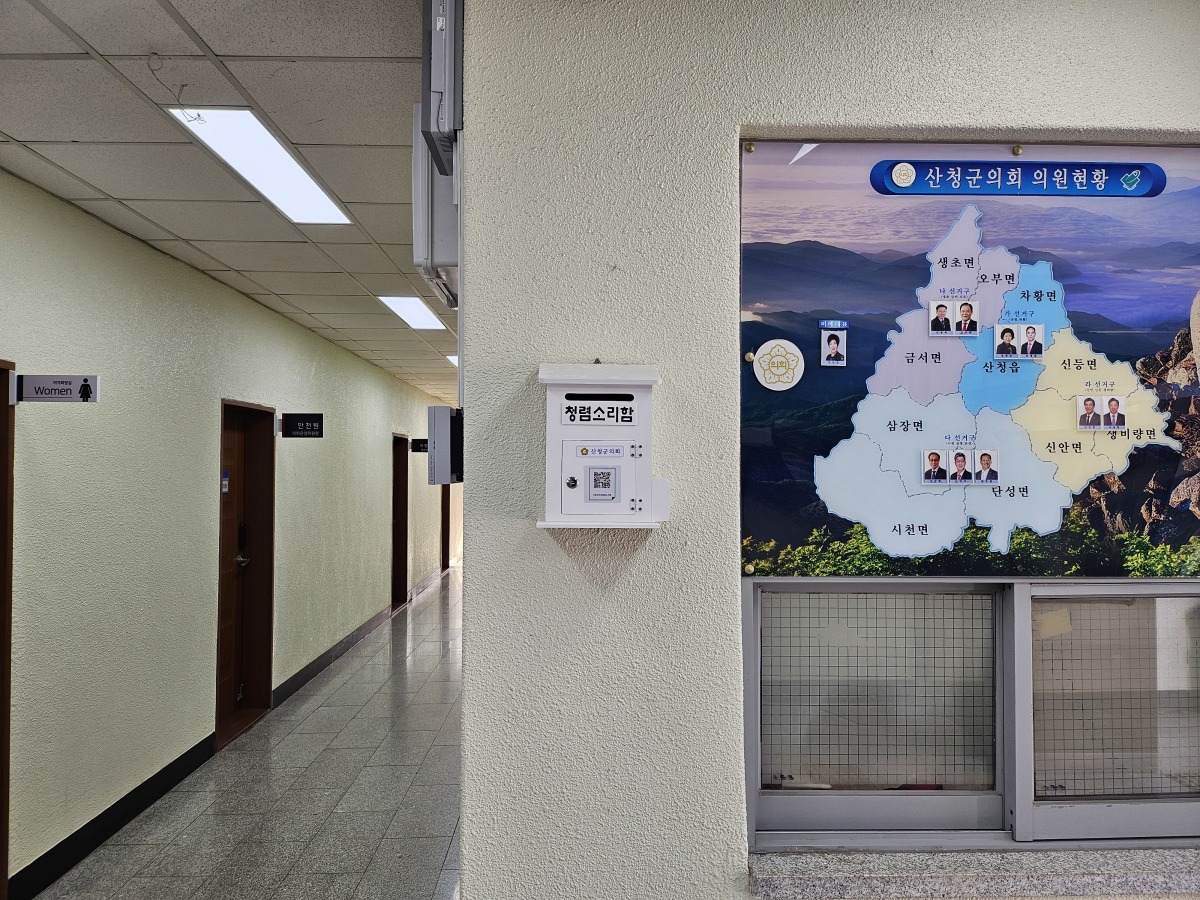 [산청=뉴스핌] 최민두 기자 = 산청군의회는 청렴하고 투명한 의회 구현을 위해 부패 신고와 의견 제안을 수렴하는 온라인 '청렴소리함'을 운영한다고 11일 밝혔다.