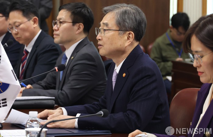 [서울=뉴스핌] 이길동 기자 = 조현 외교부 장관이 11일 오전 서울 종로구 외교부청사에서 열린 '한-네덜란드 외교산업 2+2 회의'에서 발언하고 있다. 2026.02.11 gdlee@newspim.com