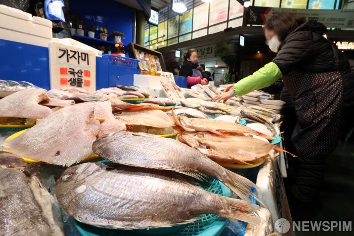 [서울=뉴스핌] 정일구 기자 = 설 명절을 앞둔 11일 서울 마포구 망원시장에서 시민들이 제수용품을 구매하고 있다. 2026.02.11 mironj19@newspim.com