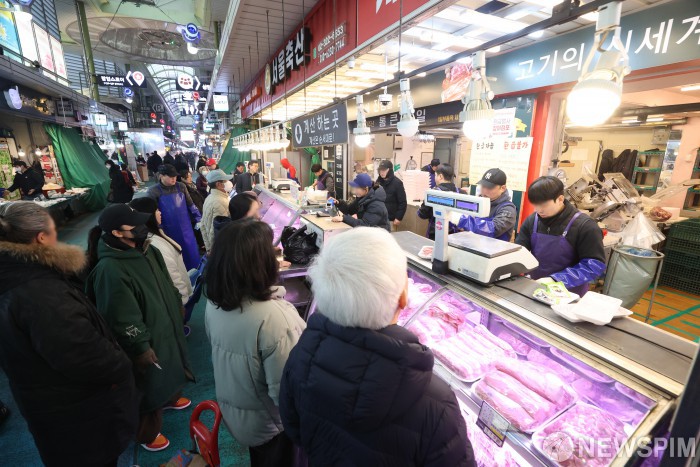 [서울=뉴스핌] 정일구 기자 = 설 명절을 앞둔 11일 서울 마포구 망원시장에서 시민들이 제수용품을 구매하고 있다. 2026.02.11 mironj19@newspim.com