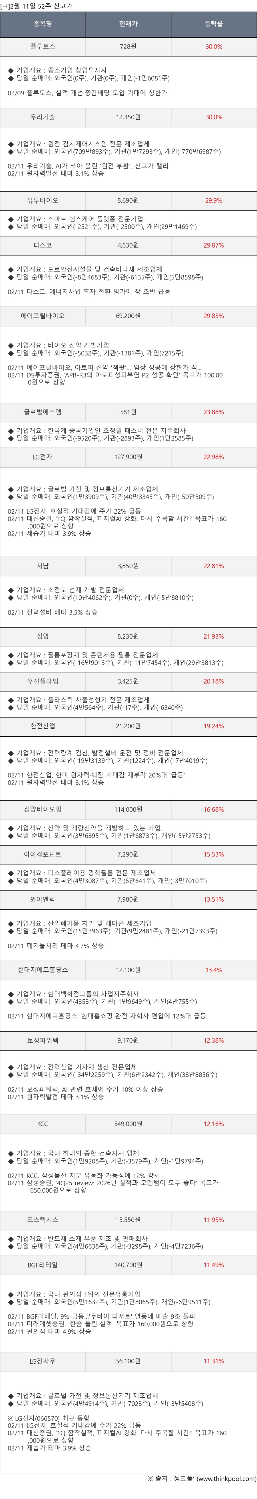 ※ 관련 종목: 플루토스, 우리기술, 유투바이오, 다스코, 에이프릴바이오, 글로벌에스엠, LG전자, 서남, 삼영, 우진플라임, 한전산업, 삼양바이오팜, 아이컴포넌트, 와이엔텍, 현대지에프홀딩스, 보성파워텍, KCC, 코스텍시스, BGF리테일, LG전자우