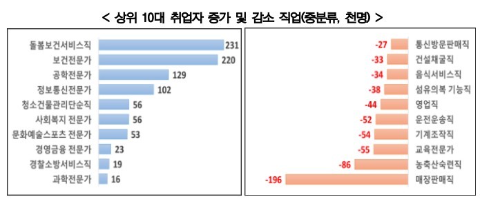 돌봄·의료 종사자 늘고 도·소매업서 감소