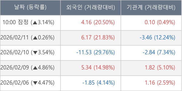 [표] 주요 기관별 순매매량 (단위 만주)