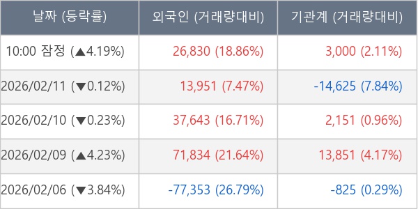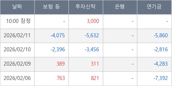 [표] 주요 기관별 순매매량 (단위 주)