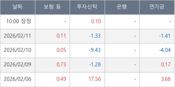 [표] 주요 기관별 순매매량 (단위 만주)