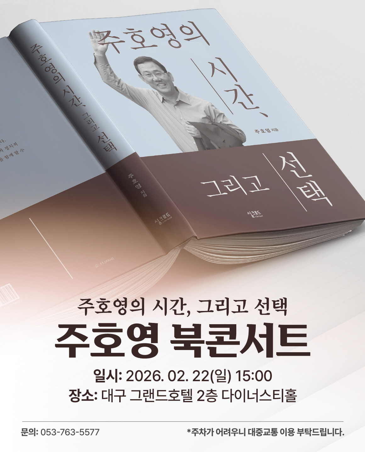[대구=뉴스핌] 김용락 기자=주호영 국회부의장(국민의힘, 대구수성구갑)이 자신의 첫 회고록 '주호영의 시간, 그리고 선택'(실크로드) 출간을 기념해 북콘서트를 연다. 행사는 오는 22일 오후 3시, 대구 그랜드호텔 다이너스티홀에서 진행된다. 이번 북콘서트는 단순한 출판기념회를 넘어 한국 정치와 대구의 미래를 둘러싼 고민을 독자들과 공유하는 자리가 될 전망이다.