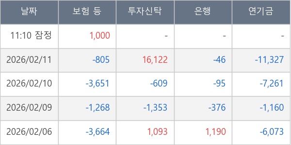 [표] 주요 기관별 순매매량 (단위 주)