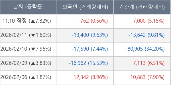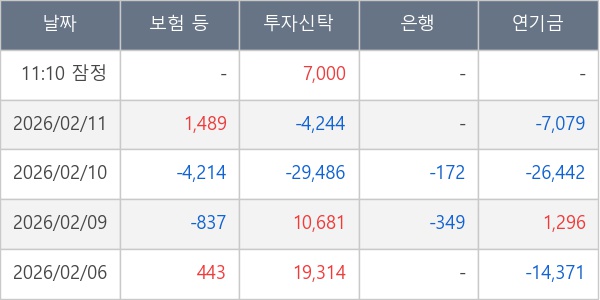 ※ 사모펀드 등 일부 기관의 순매매량은 표시되지 않음