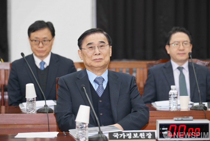 [서울=뉴스핌] 윤창빈 기자 = 이종석 국가정보원장이 12일 서울 여의도 국회에서 열린 정보위원회 전체회의에 출석해 있다. 2026.02.12 pangbin@newspim.com
