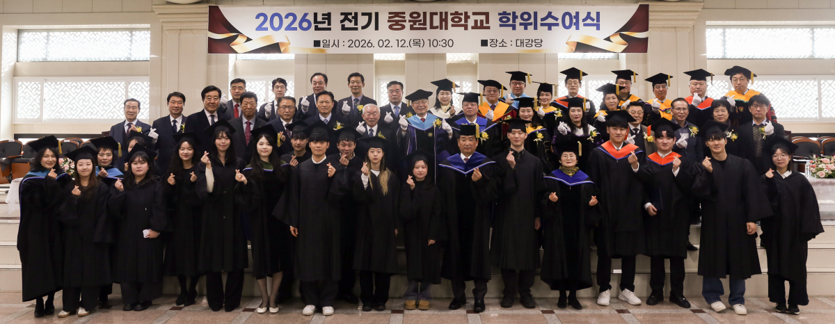 [괴산=뉴스핌] 백운학 기자 = 중원대학교는 12일 오전 교내 대강당에서 '2026학년도 전기 학위수여식'을 열고 박사 17명, 석사 24명, 학사 686명 등 총 727명에게 학위를 수여했다.