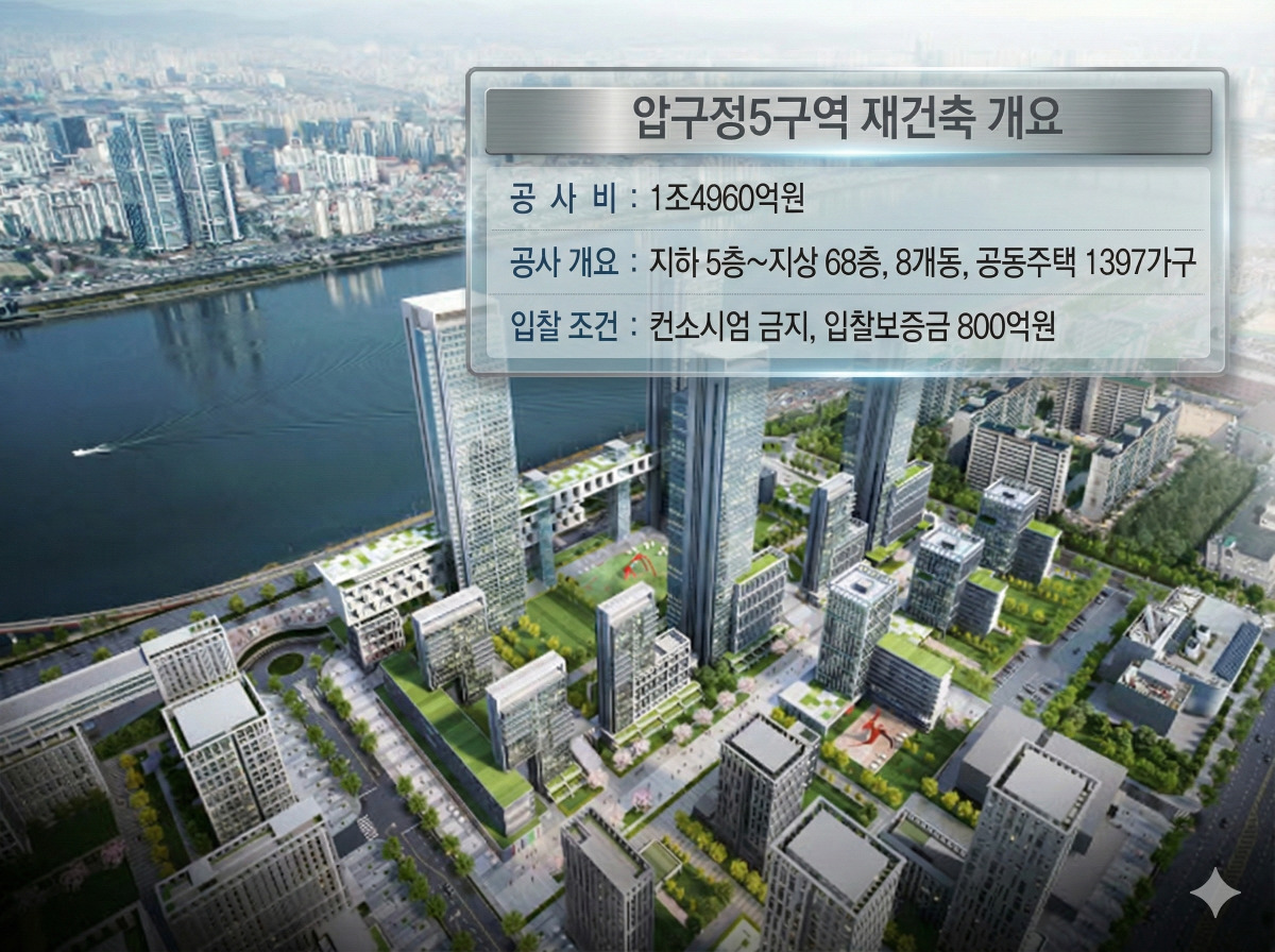 조합은 이번 입찰에서 대형 건설사들의 책임 시공을 유도하기 위해 '컨소시엄 불가' 방침을 확정했다. 입찰보증금으로는 800억원(현금 400억원, 이행보증보험증권 400억원)을 내걸었다. 현금 유동성이 풍부하고 재무 구조가 탄탄한 최상위권 건설사만이 참여할 수 있다는 일종의 '진입 장벽'이자, 확실한 시공 의지가 있는 곳만 받겠다는 조합의 자신감으로 풀이된다.