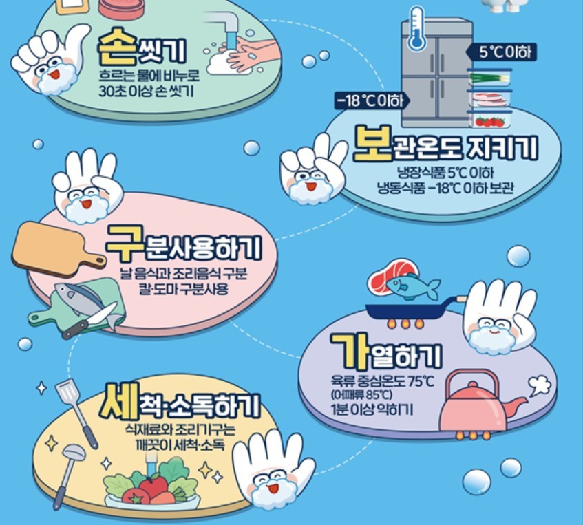 식약처 관계자는 "명절 음식을 만들기 전에는 비누 등 손 세정제를 이용해 30초 이상 흐르는 물에 손을 깨끗이 씻어야 한다"며 "달걀이나 생고기를 만진 뒤 다시 손을 씻고 조리해야 식품 간 세균 전염을 막을 수 있다"고 밝혔다.