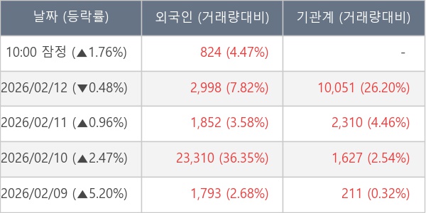 [표] 외국인ㆍ기관 순매매량 (단위 주)