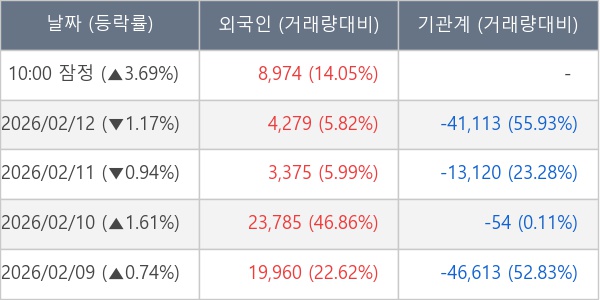 [표] 외국인ㆍ기관 순매매량 (단위 주)