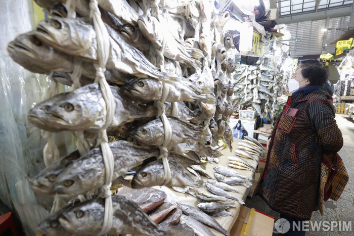 [서울=뉴스핌] 류기찬 기자 = 설 연휴를 사흘 앞둔 13일 오전 서울 동대문구 경동시장을 찾은 시민들이 제수용품을 살펴보고 있다. 2026.02.13 ryuchan0925@newspim.com