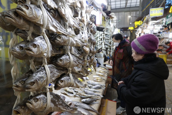 [서울=뉴스핌] 류기찬 기자 = 설 연휴를 사흘 앞둔 13일 오전 서울 동대문구 경동시장을 찾은 시민들이 제수용품을 살펴보고 있다. 2026.02.13 ryuchan0925@newspim.com